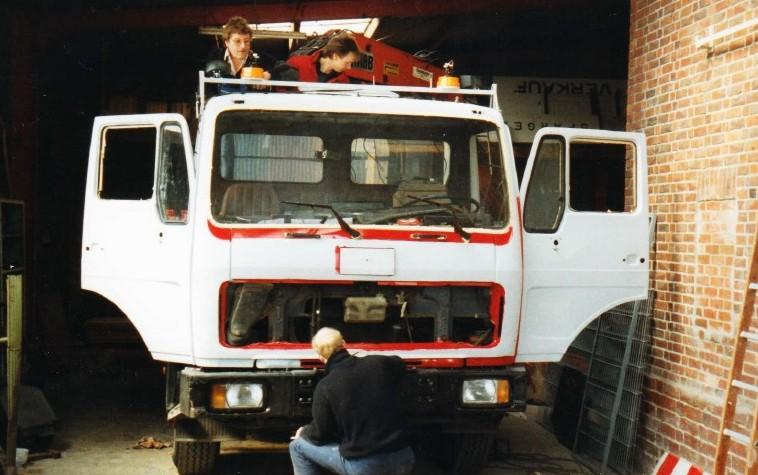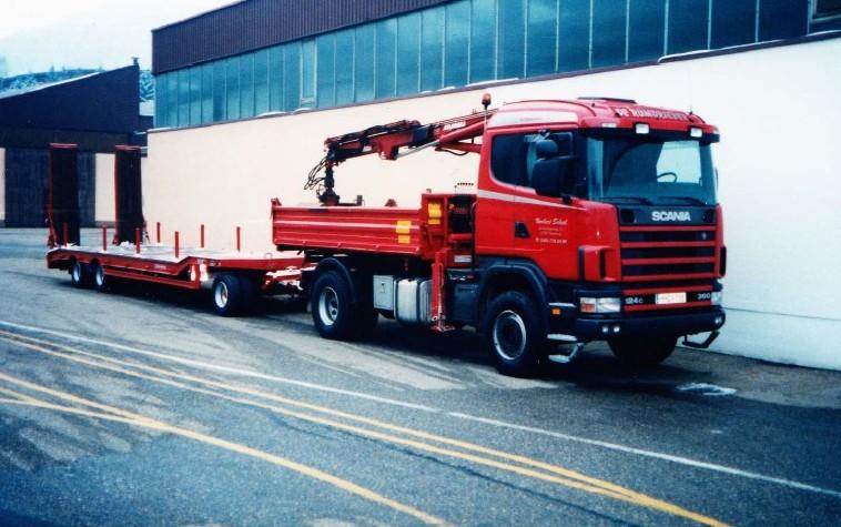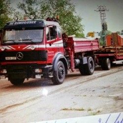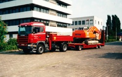 | Zu beginn der Selbständigkeit im Jahr 1990 belieferten wir Supermärkte mit Lebensmittel für einen großen Konzern. Mein Interesse an Baustellen u. Baumaschinentransporte (diese habe ich als Kraftfahrer im Angestelltenverhältnis kennen gelernt) ließ nicht nach. Dieses gab 1993 neuen Anschub einen gebrauchten Selbstlader von einer Straßenbaufirma zu übernehmen. Hierbei war eine Auslastung für ein Jahr gesichert. Nach und nach bekamen wir auch Aufträge von anderen Firmen, sodass wir diese Branche weiter ausgebaut haben und uns von den Lebensmitteltransporten trennten. Anfang 1995 konnten wir dann auch Tiefladertransporte anbieten. Seit dieser Zeit haben wir die Fahrzeuge und Anhänger den Anforderungen angepasst. Zu meinen ehemaligen Arbeitgebern habe ich bis heute Kontakt, der über das Geschäftliche hinaus geht. |